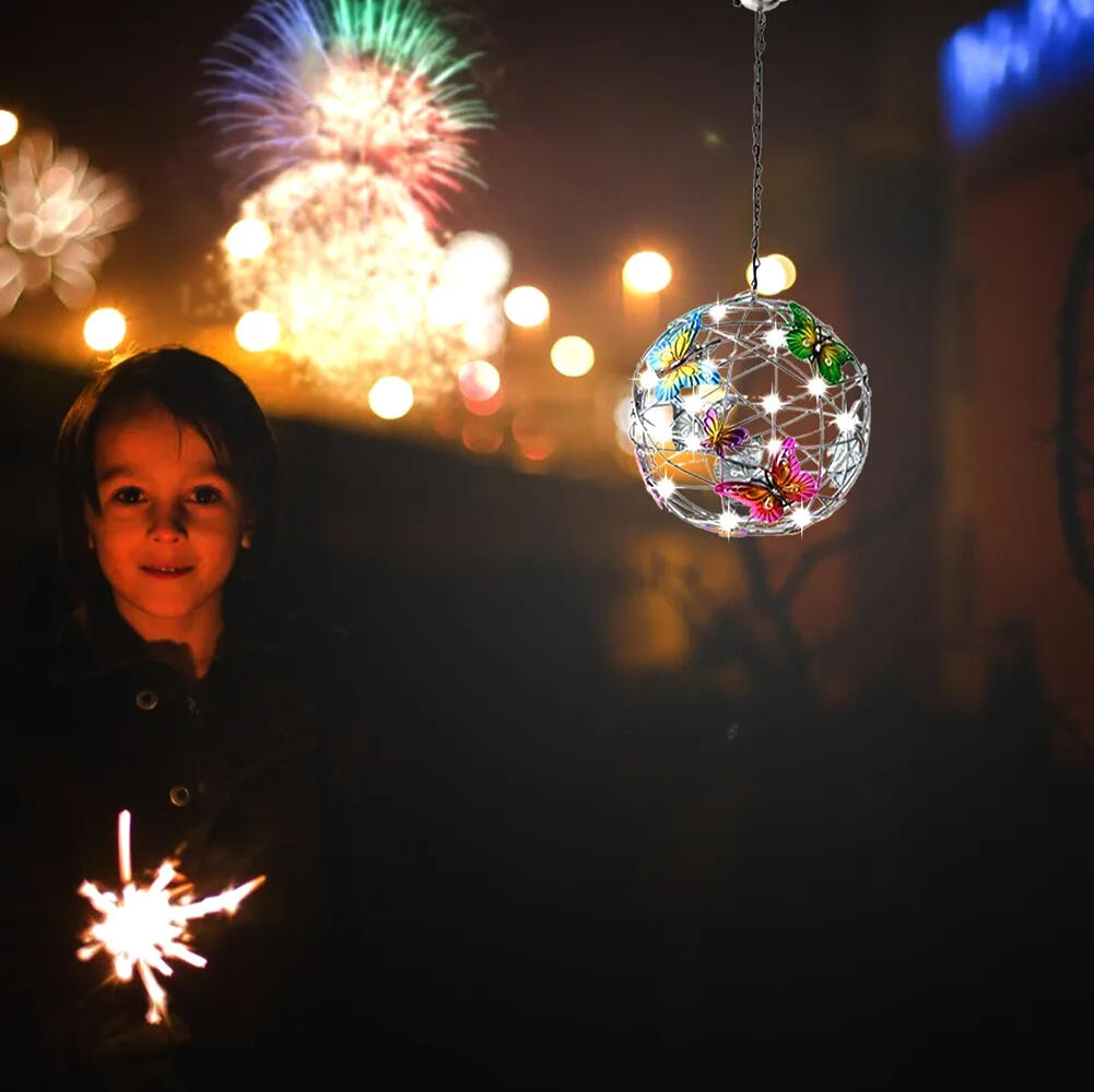 Not only is our light functional, but it also serves as a gorgeous decoration for any outdoor space. Hang it in your garden, on your porch, or along your pathway and watch as guests and passersby are amazed by its beauty. The combination of the spherical shape and colorful butterflies creates a stunning display that will add an elegant atmosphere to any setting.
